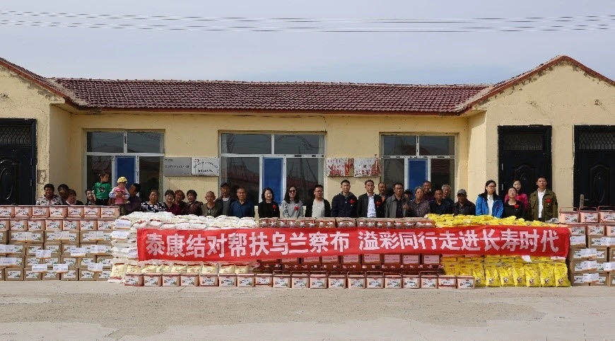 乌兰察布市察右中旗和察右后旗是泰康保险集团定点帮扶的贫困地区,乌兰察布察右中旗敬老院、乌兰察布察右后旗当郎忽洞苏木幸福院也是泰康溢彩千家资助的养老机构,自2018年以来,泰康保险集团以及泰康溢彩公益基金会通过消费扶贫、健康扶贫等方式,购买扶贫农牧产品,捐赠养老机构医疗设备、运动健身器材、助老生活物资等累计支出近一千万元。