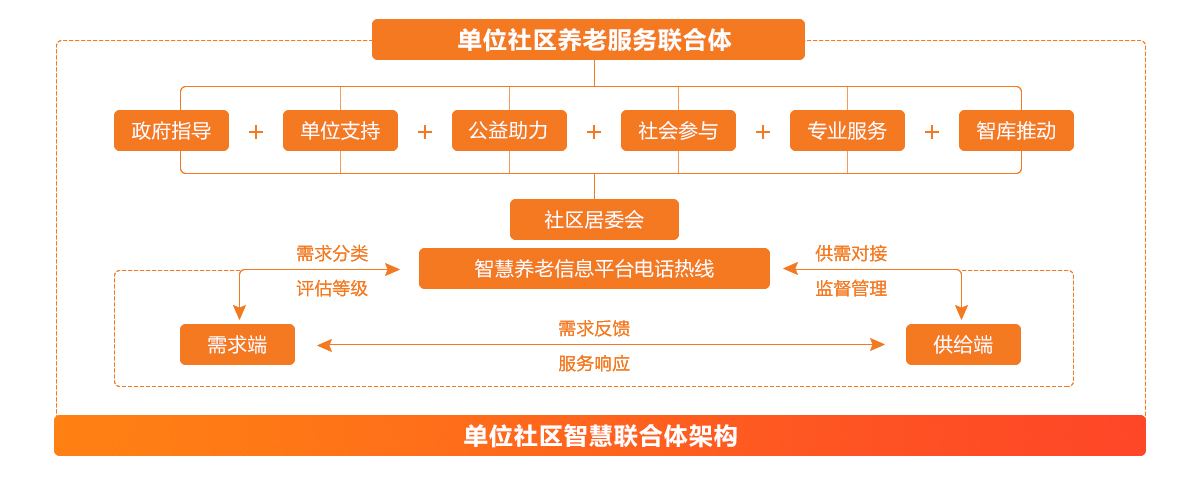 单位社区智慧养联体以老年人为本,旨在传承爱老、敬老、孝老的传统美德,形成全方位、全时段、高质量、精准到人的为老服务。
